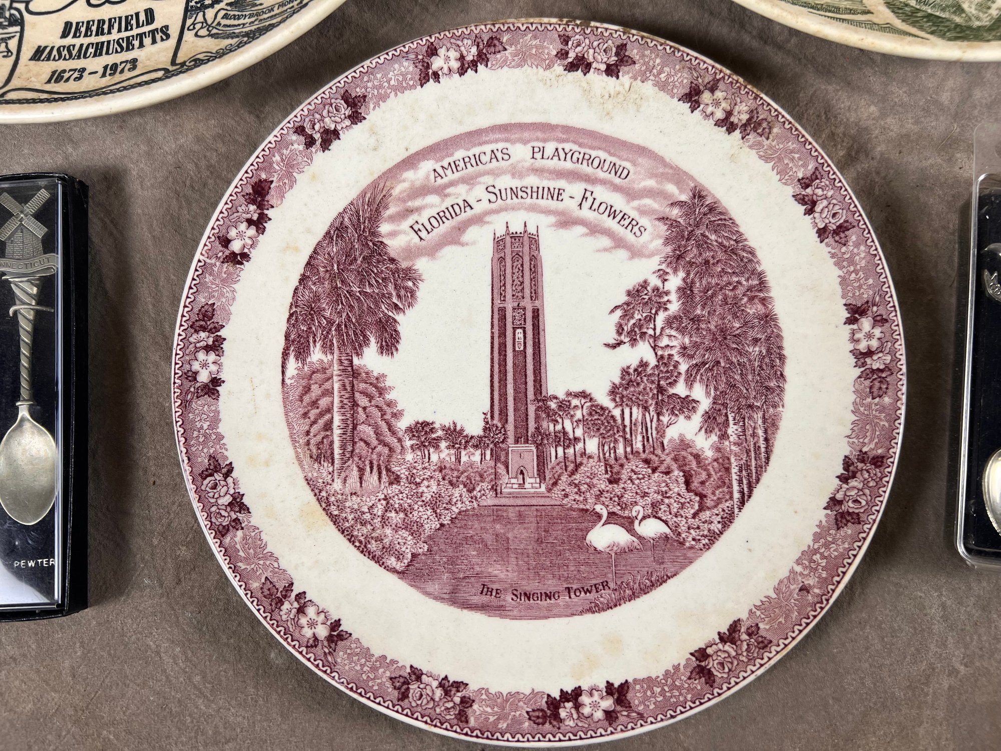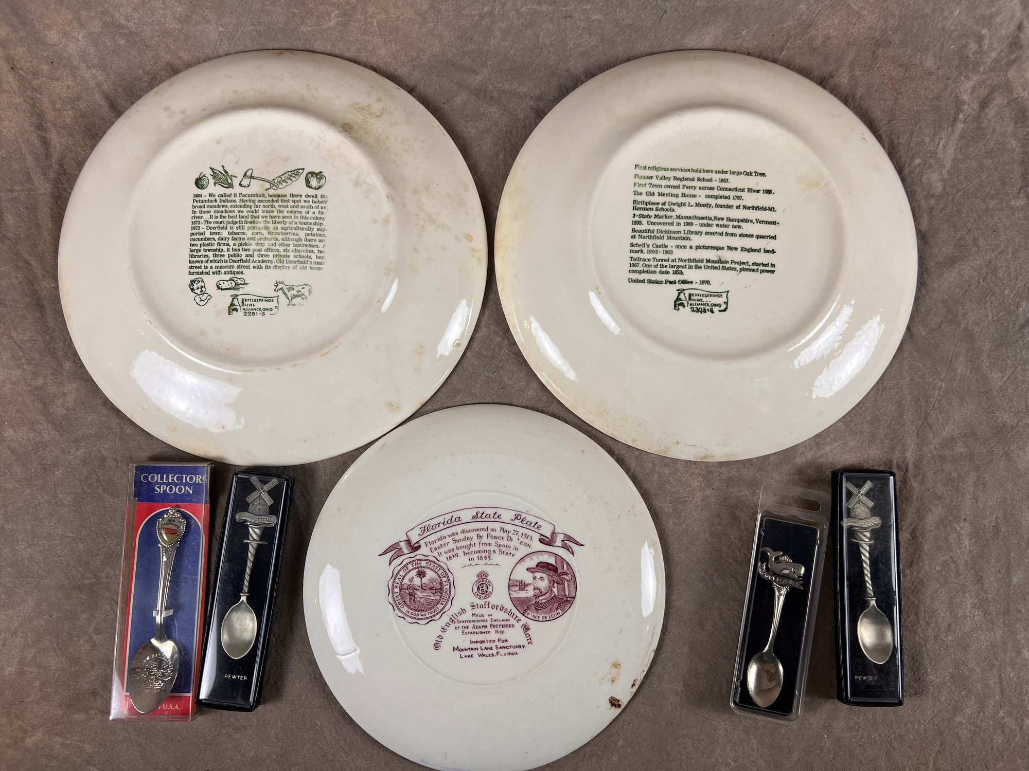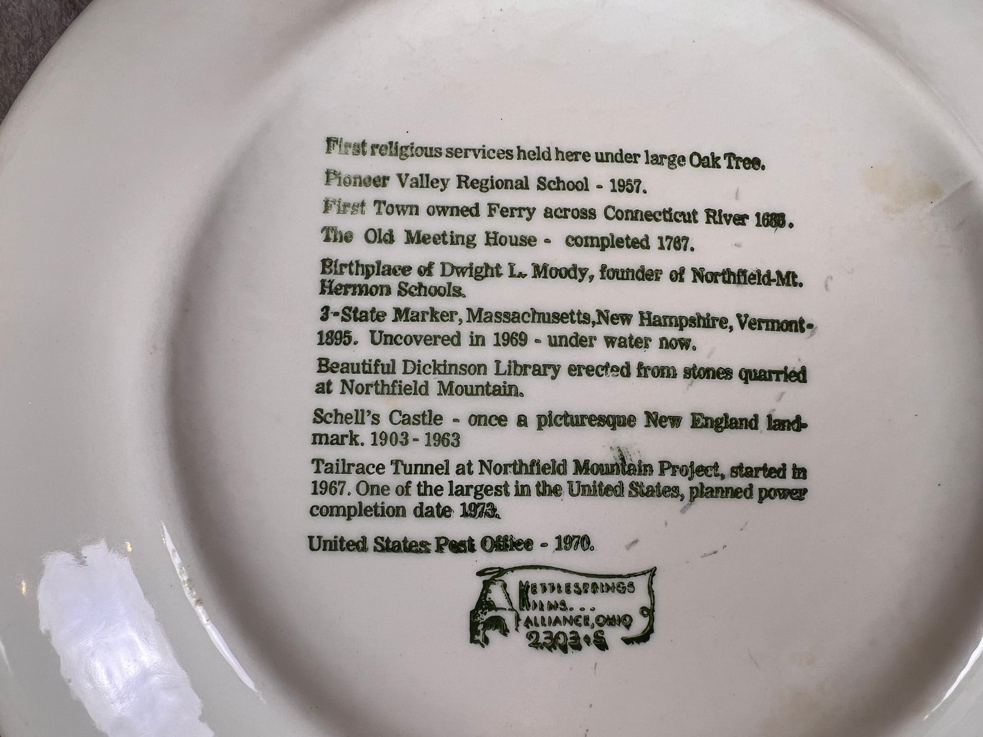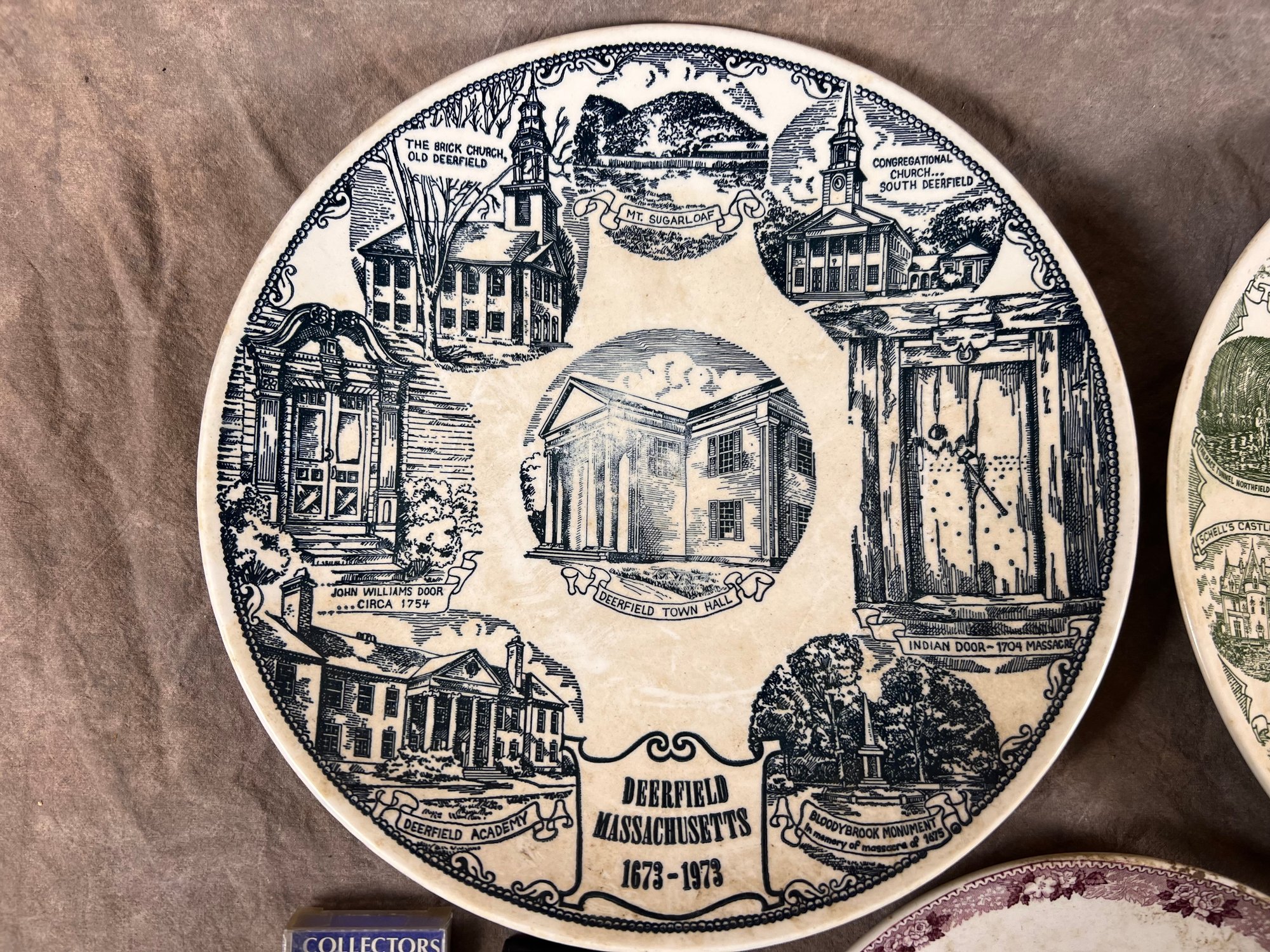 Two of the commemorative plates feature the town of Northfield Massachusetts and Deerfield Massachusetts while the other one is Florida and appears to be older