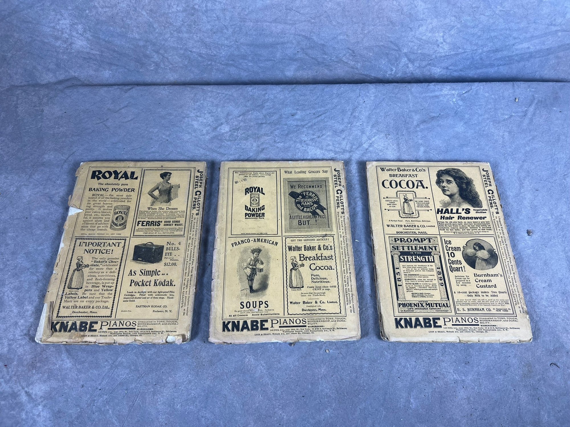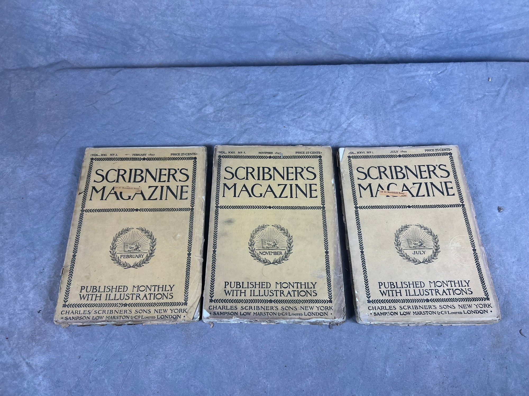set of three scribners magazines, February 1897, November 1897, July 1899. varying in conditions