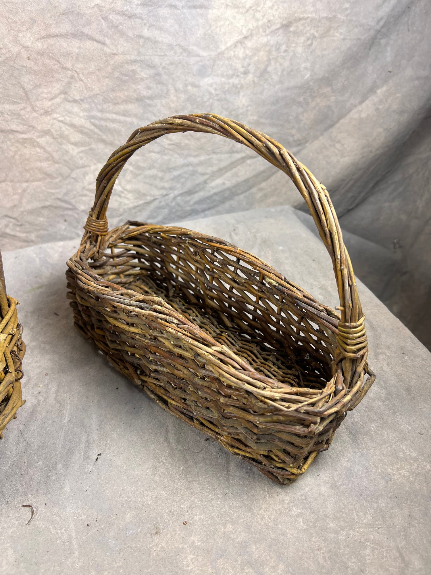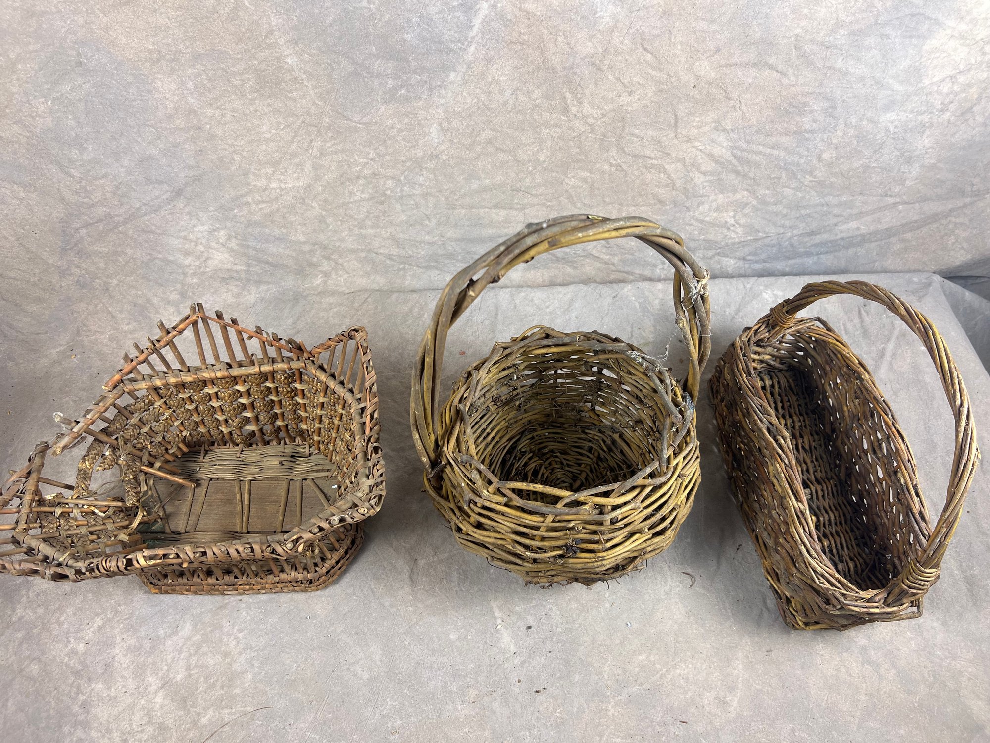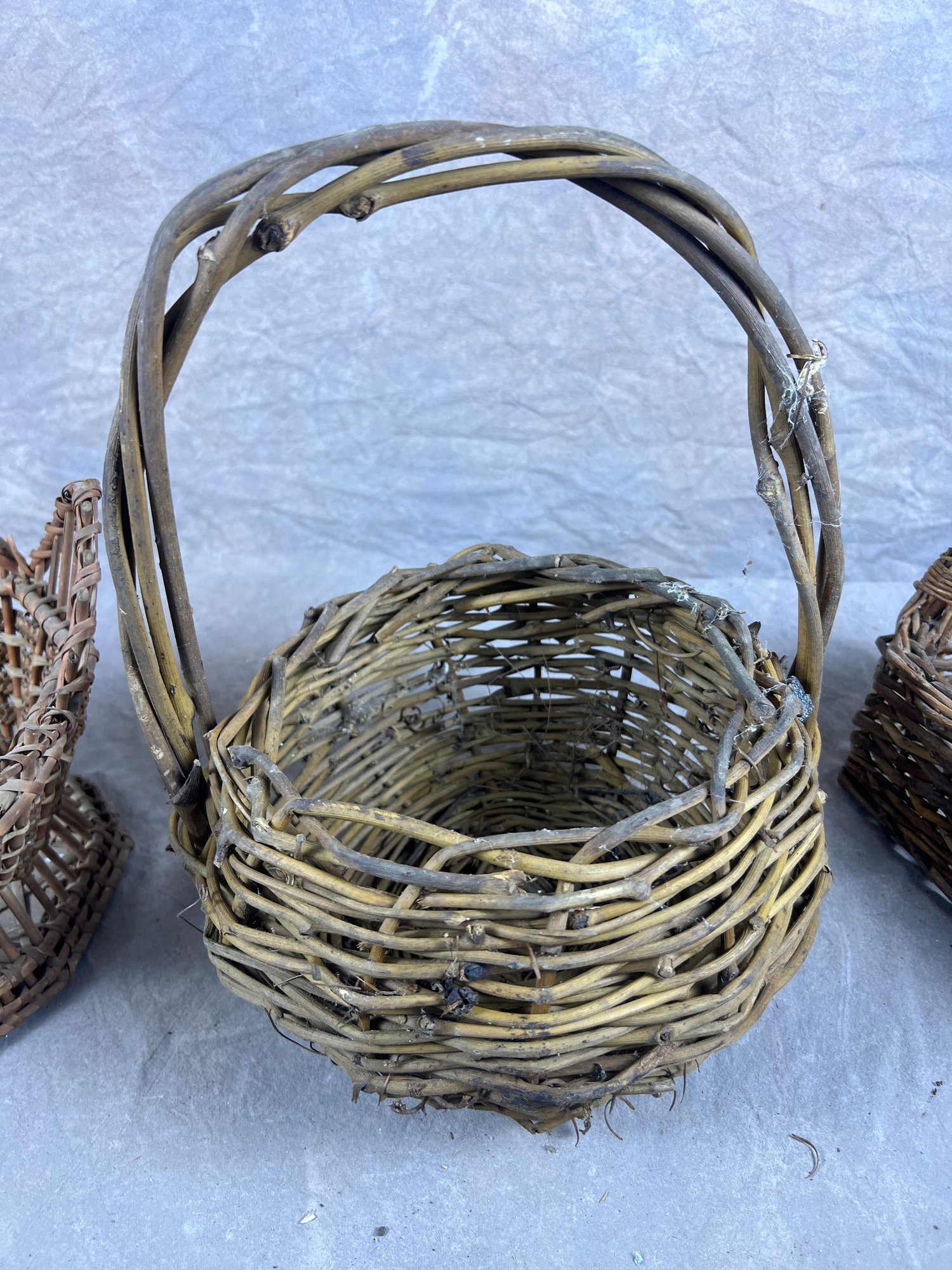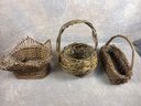 Set Of Three Vintage Rustic Wicker Twig Baskets, mid 20th century