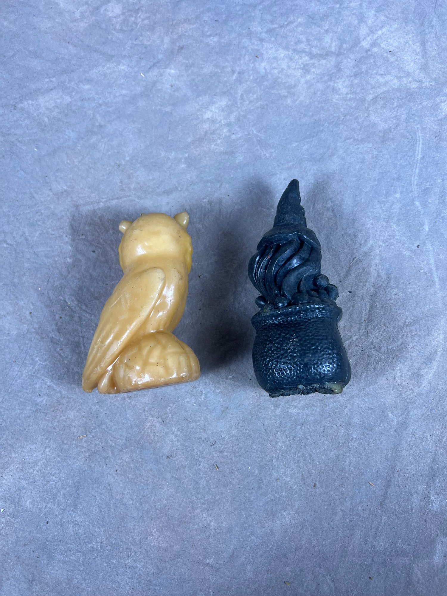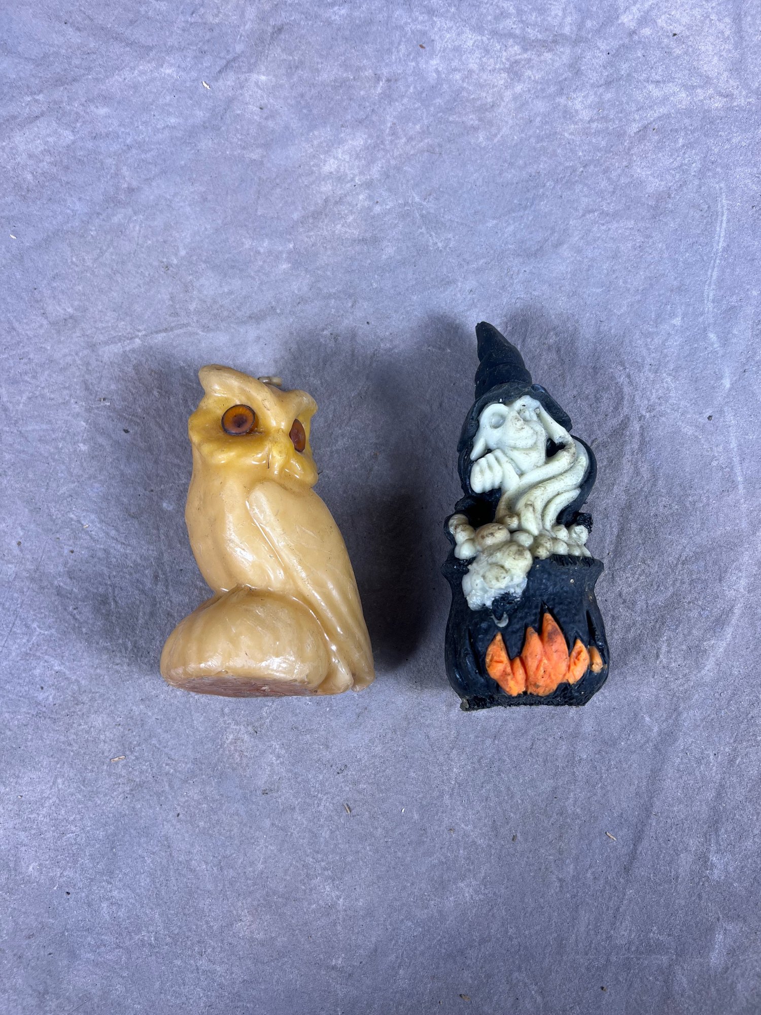 Set Of Two Unique Candles, Owl And Witch In Cauldron, collectors items, in good condition