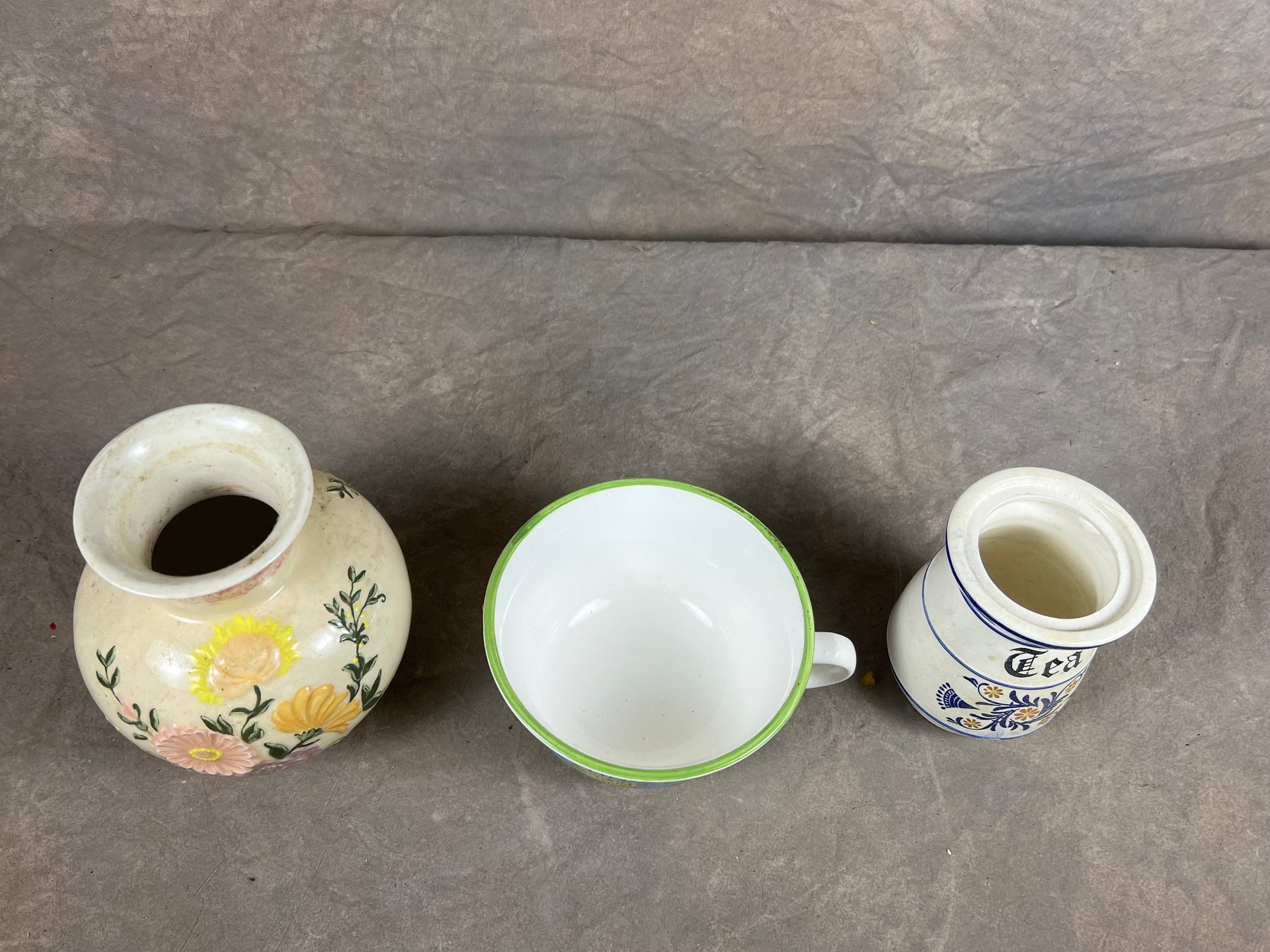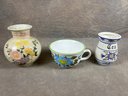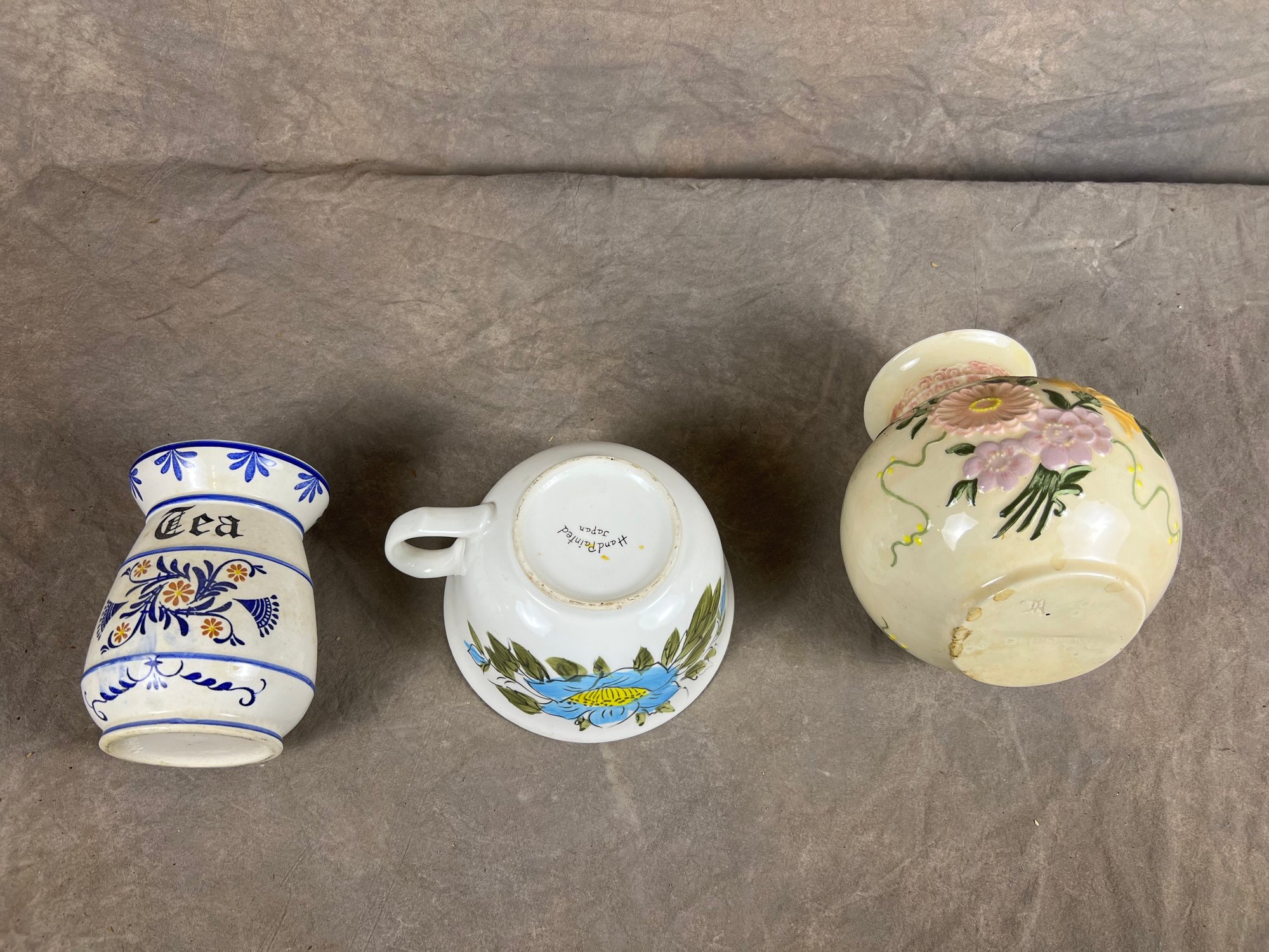 Three Hand Painted Ceramic Vases, two from Japan, in good condition