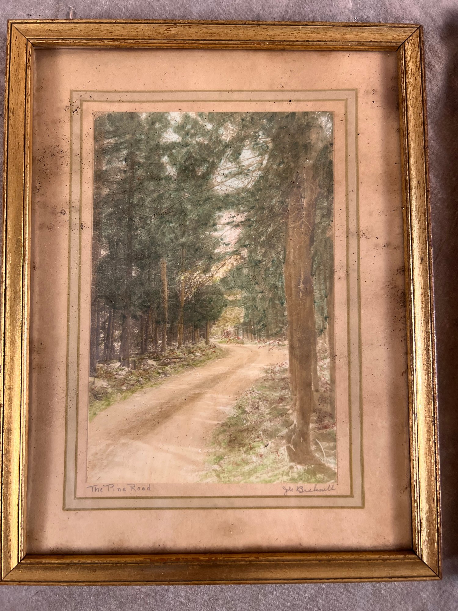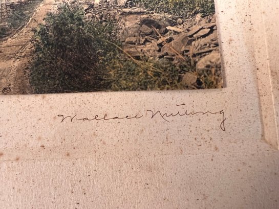 Two Framed Antique hand colored prints, Wallace nutting and I couldn’t quite make out the signature on the other one titled the pine Road. The Pine Road is 9 x 6 1/2“ and the wall nutting is 9 1/2 x 8inches, outside frame measurements
