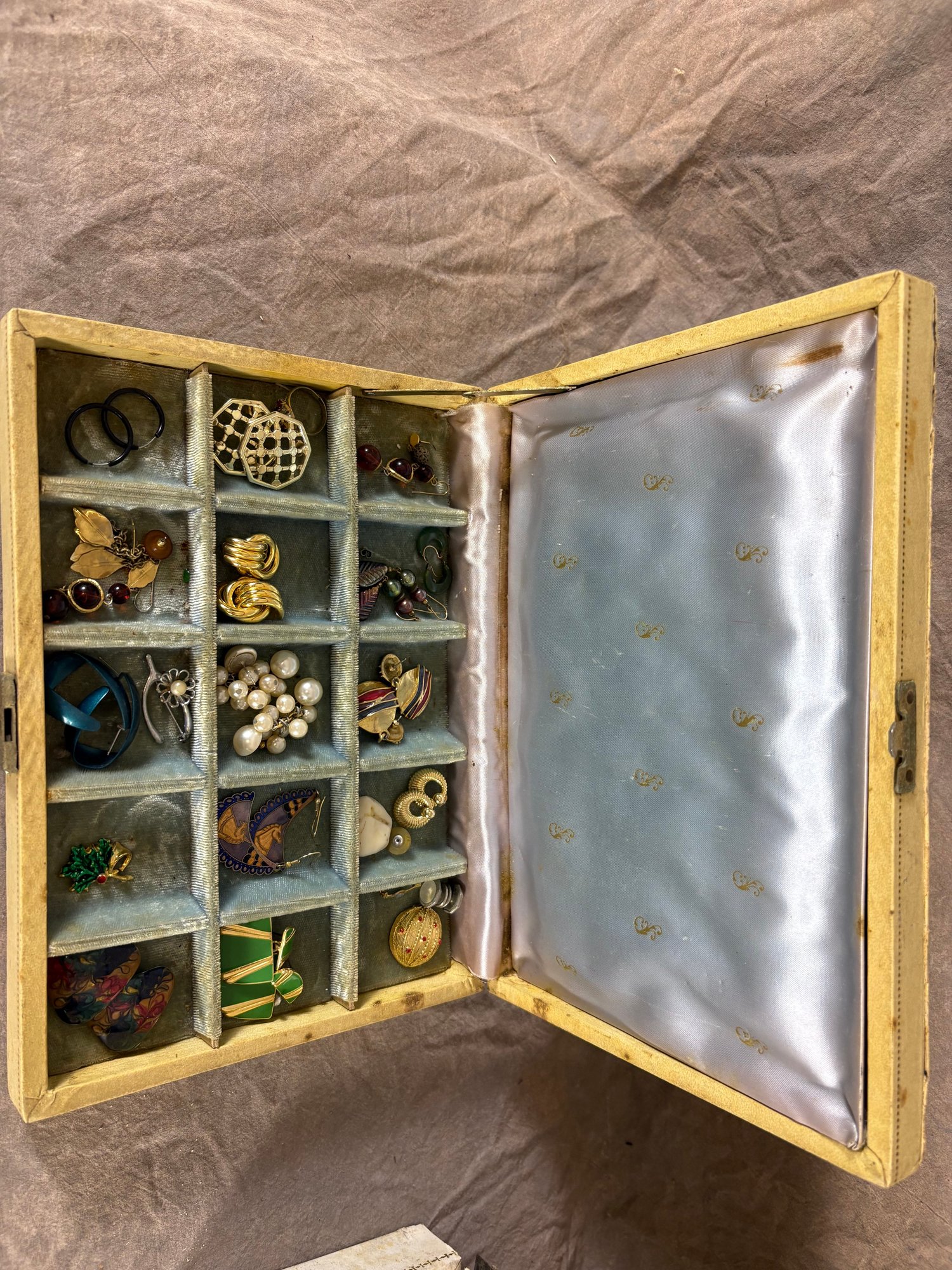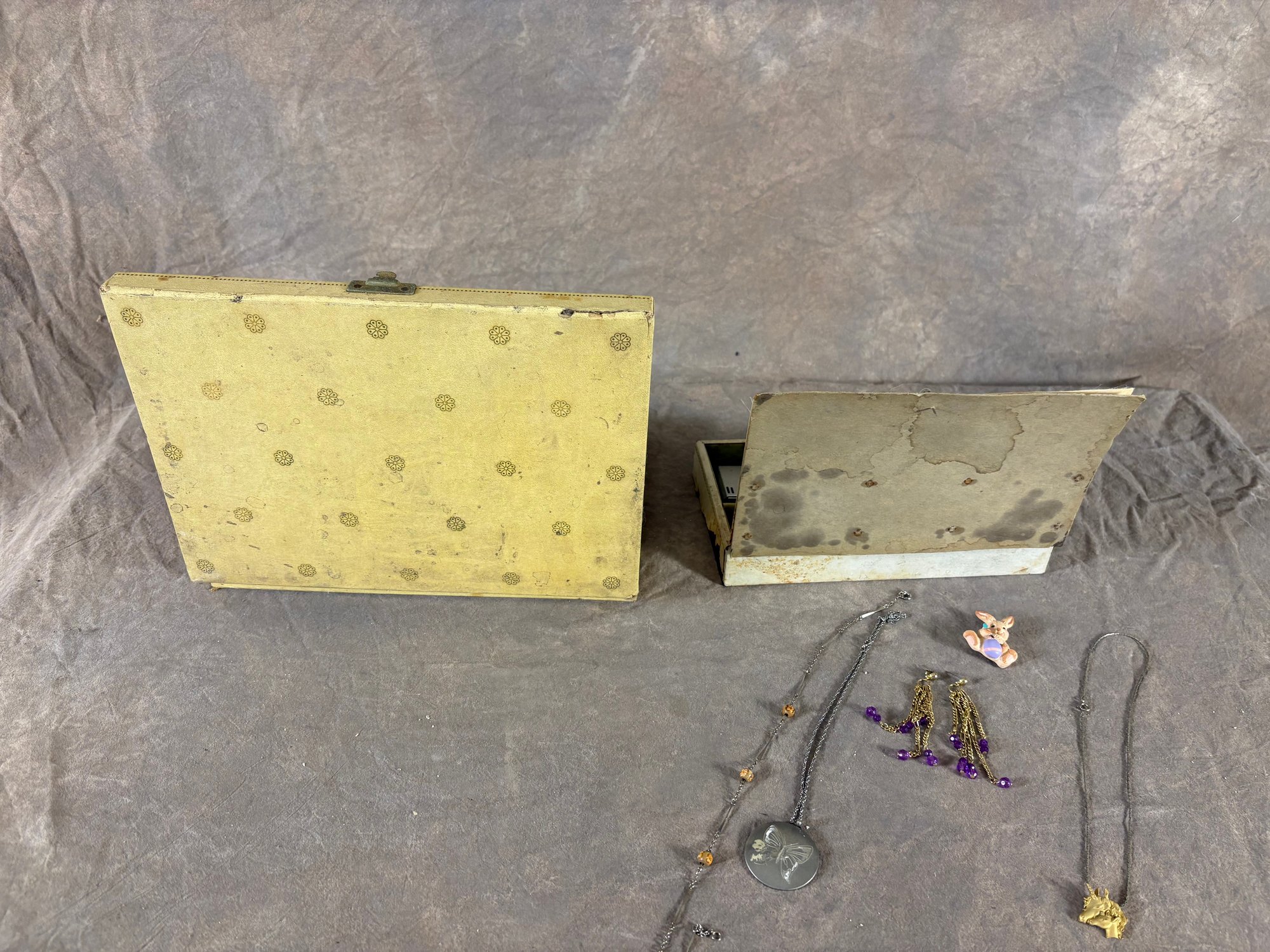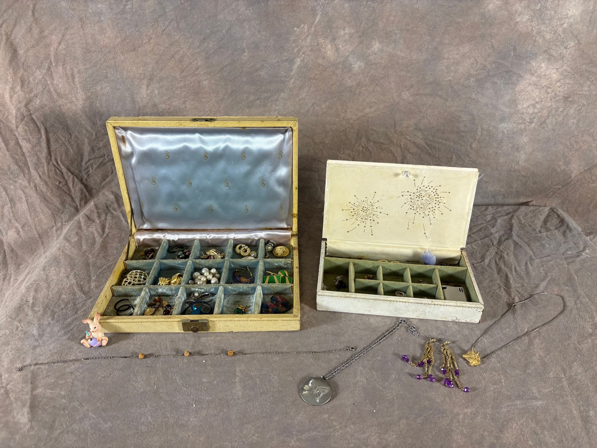 Two Vintage Jewelry Boxes with Assorted Costume Jewelry some damage to jewelry boxes as shown in pictures