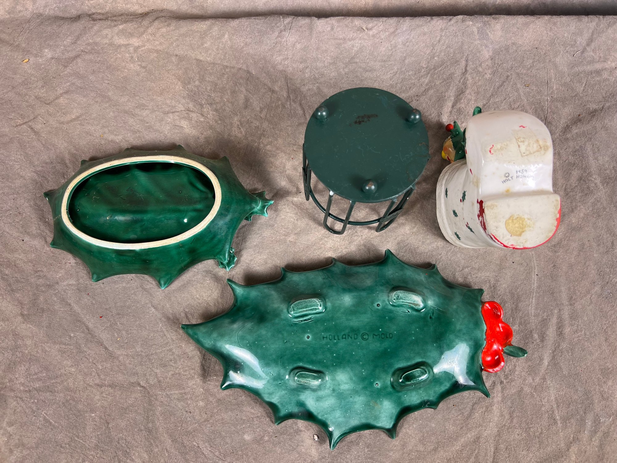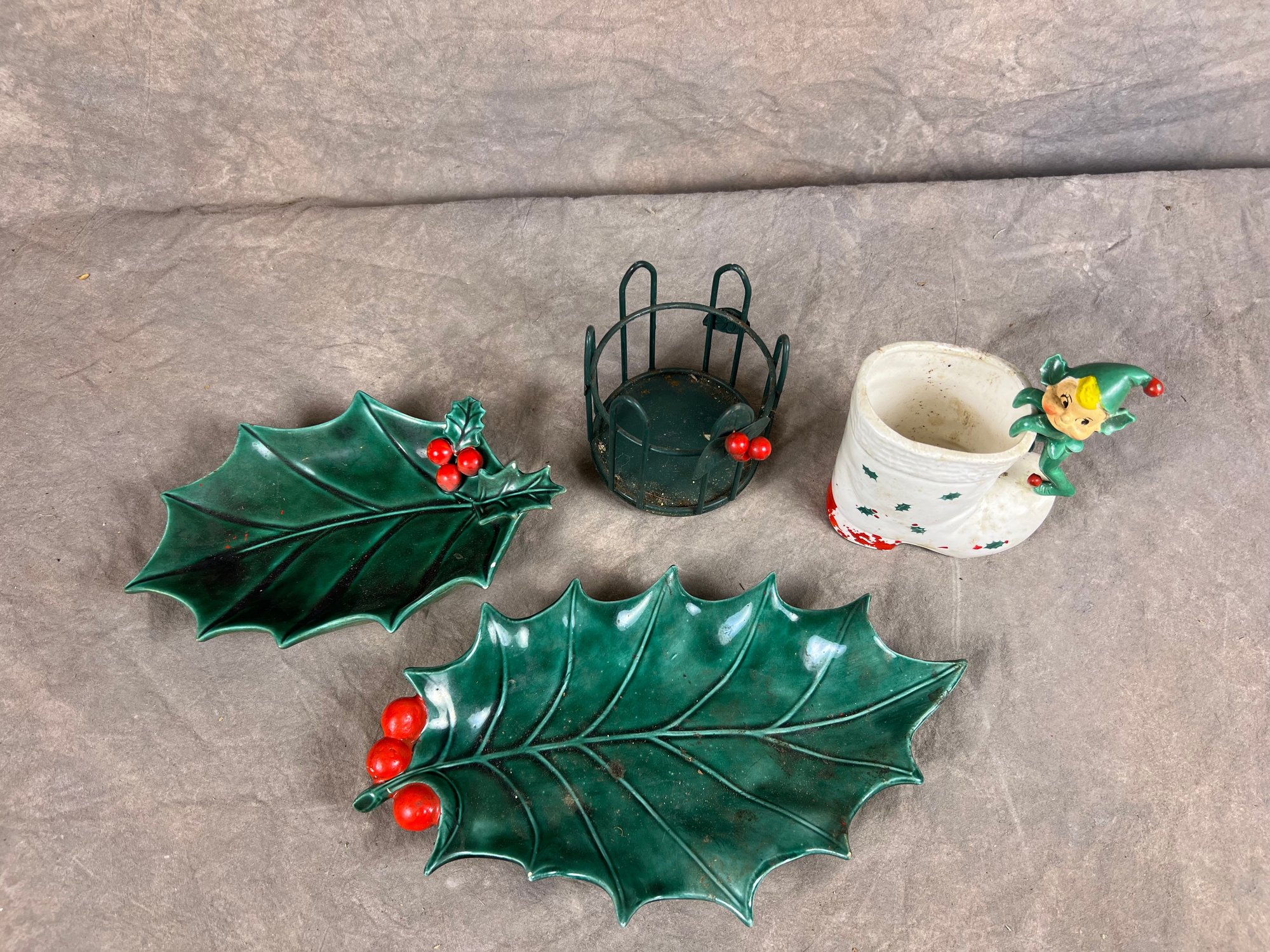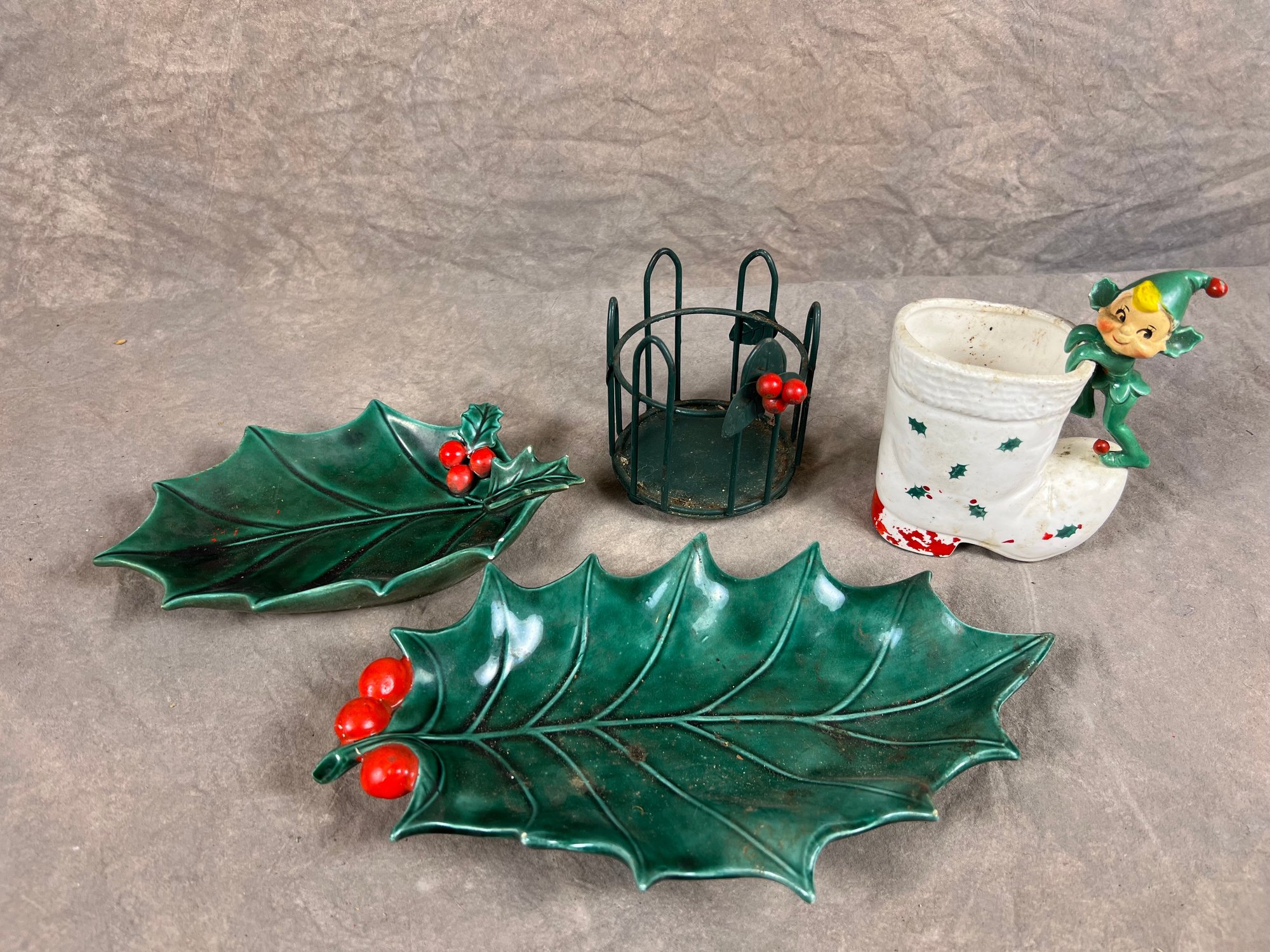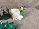 Vintage Christmas Decorative Plates, Candle Holder And Cup, in good conditions