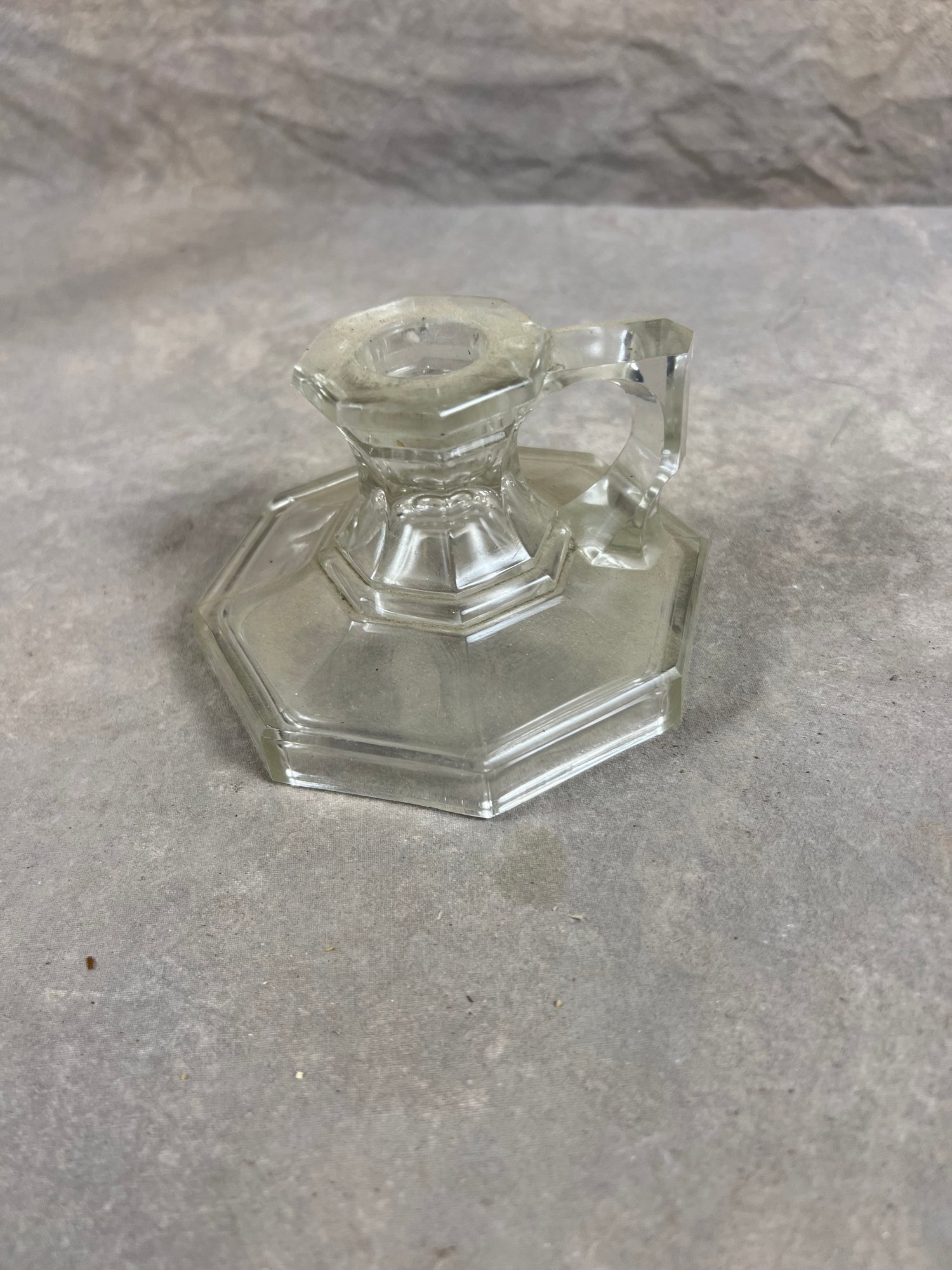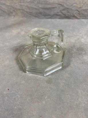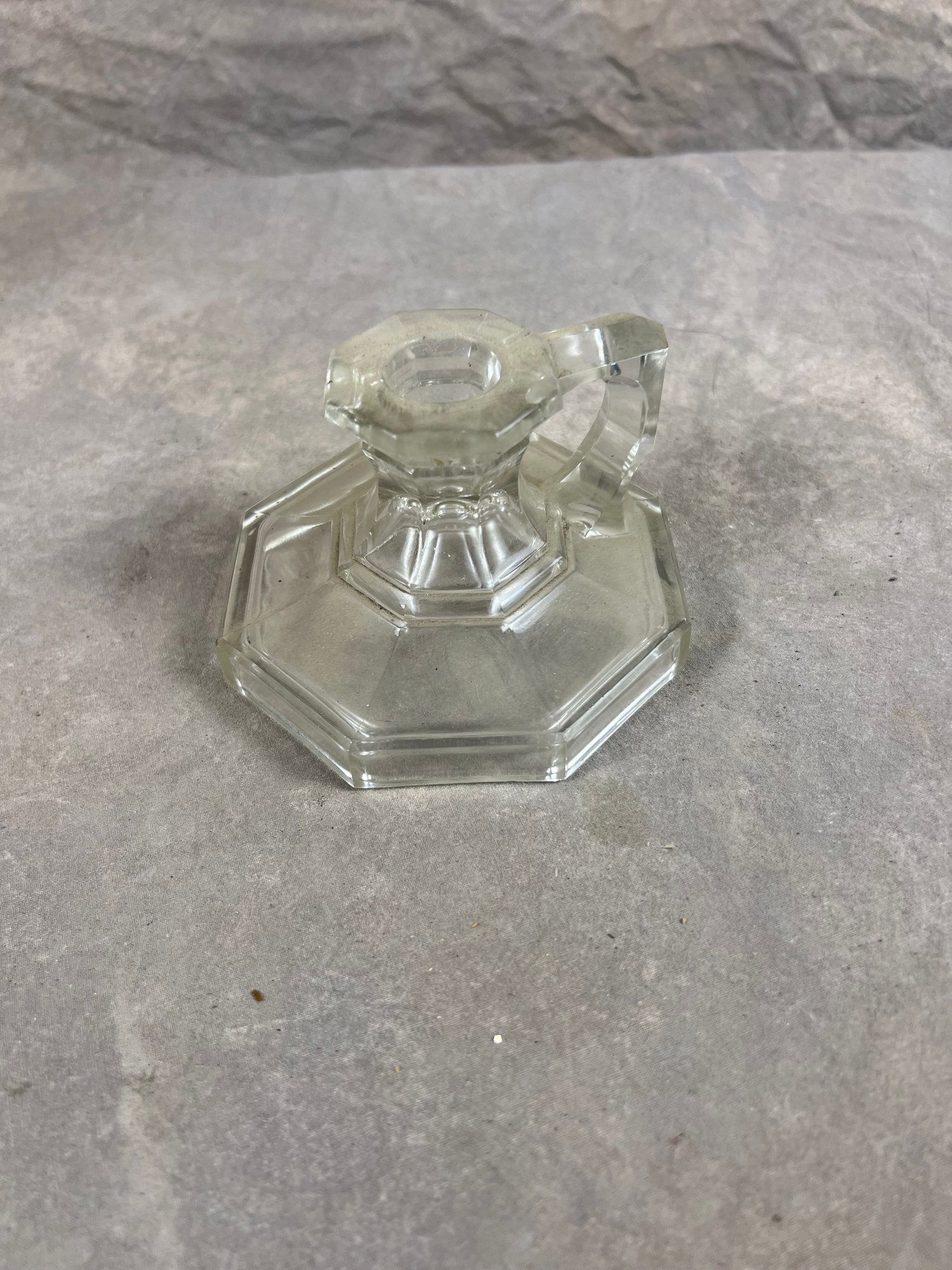Vintage Clear Glass Candlestick Holder With Finger Ring, mid 20th century, in good condition