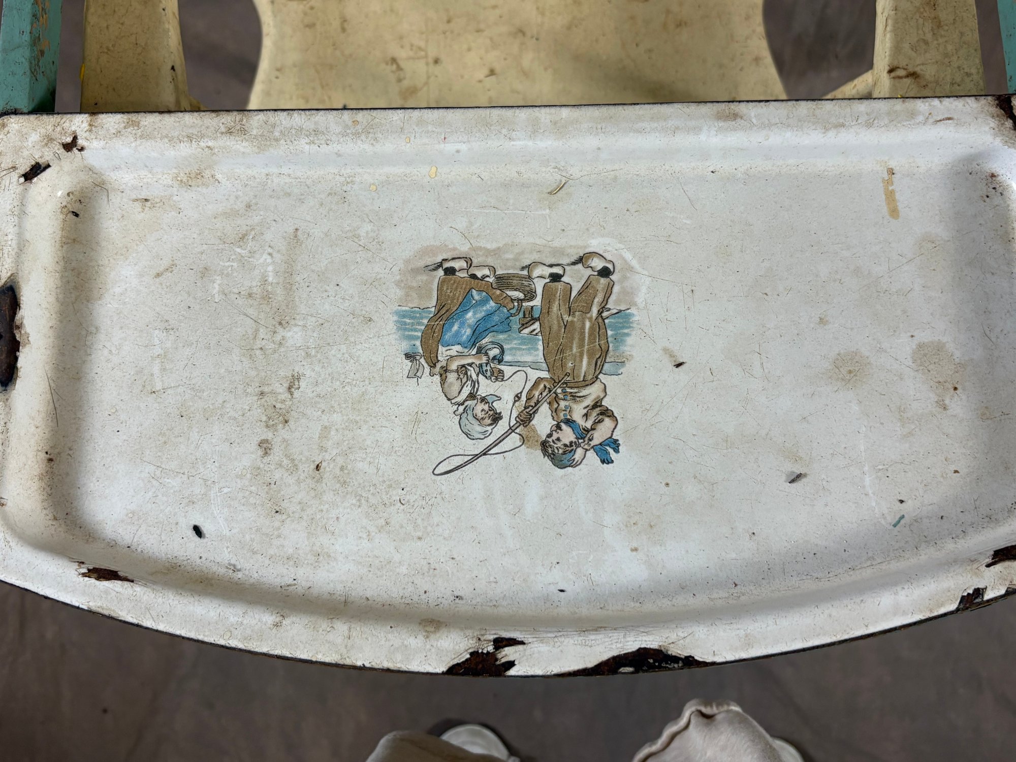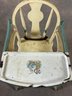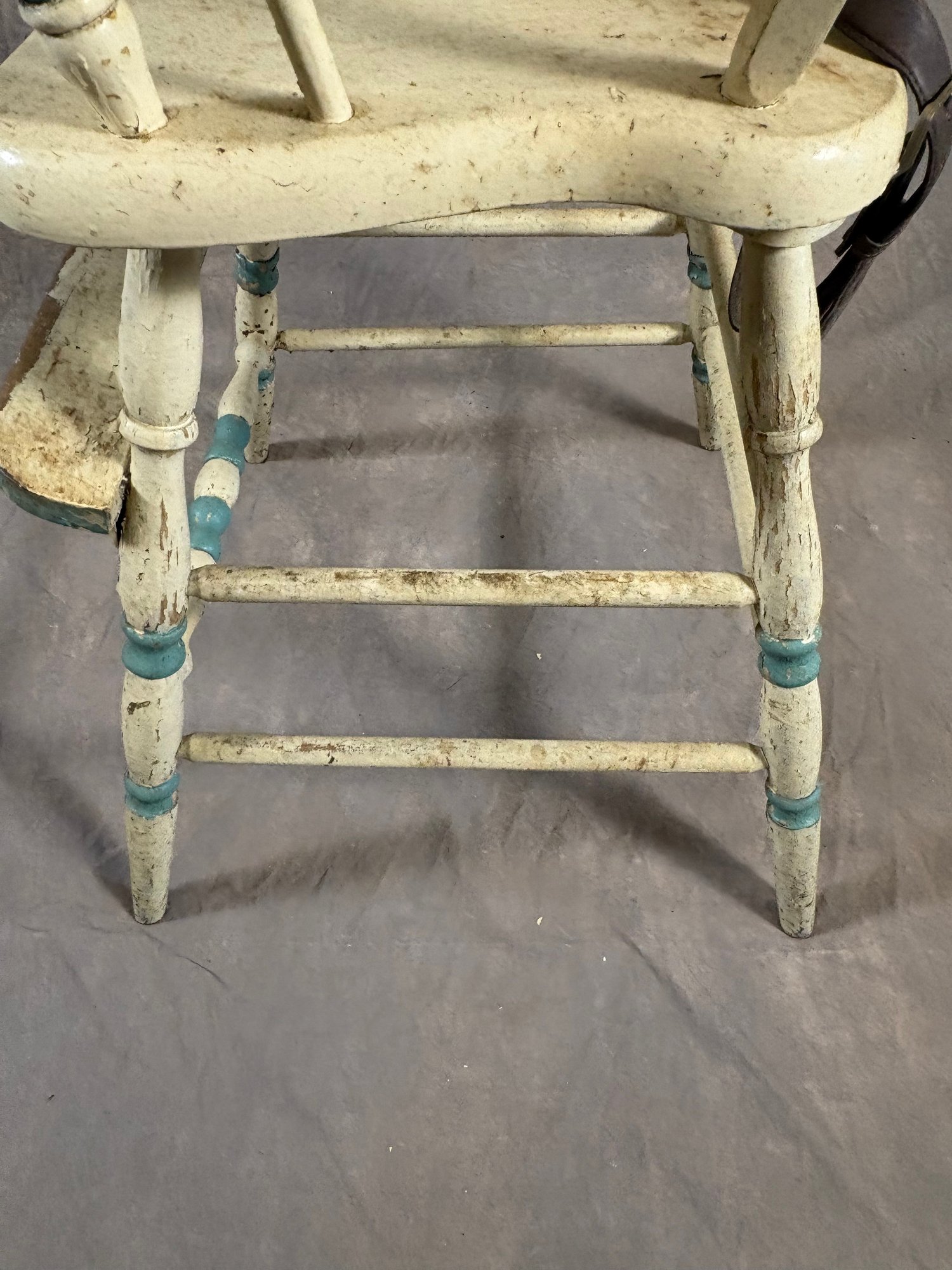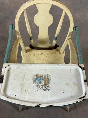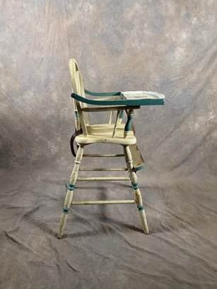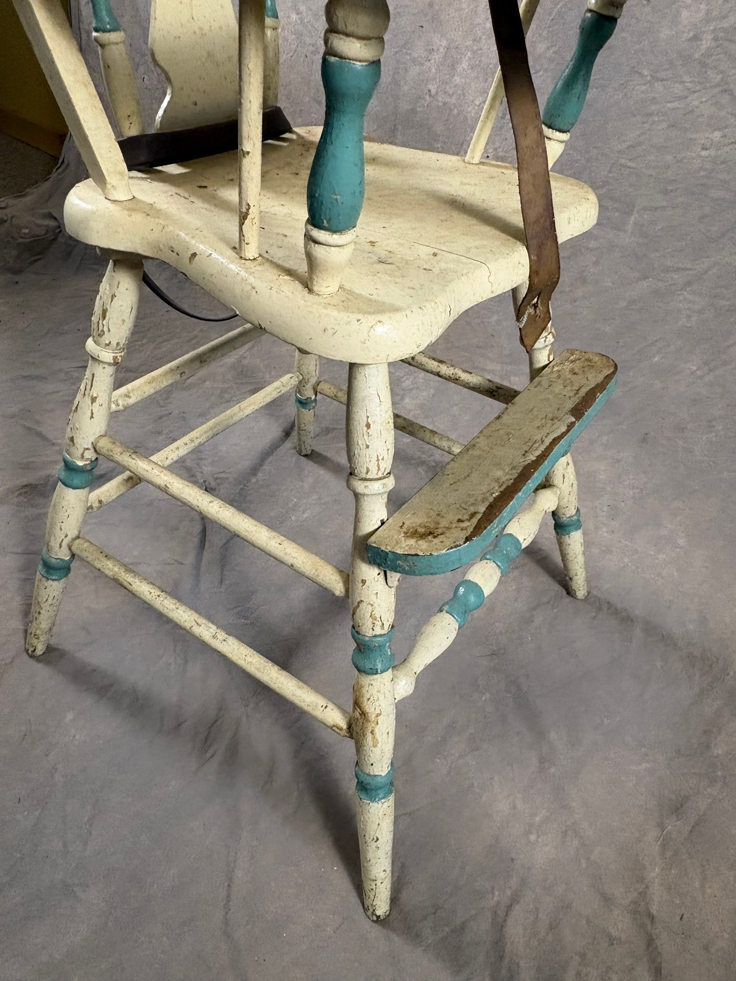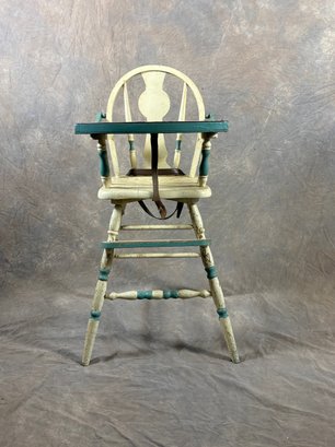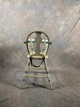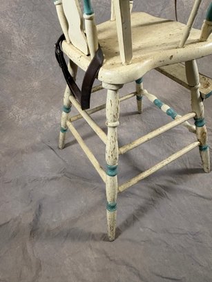 Vintage painted wooden high chair with belt still on it