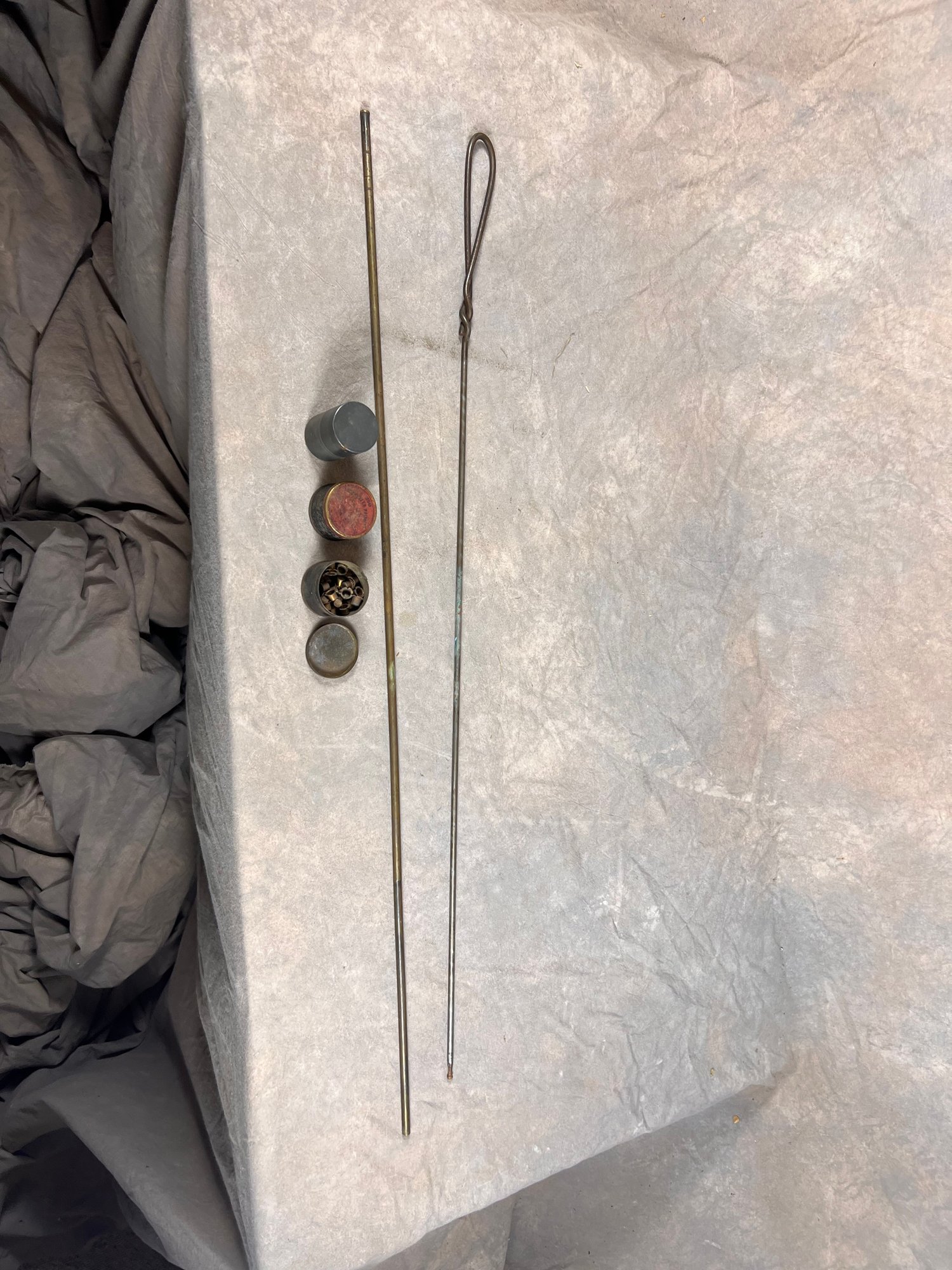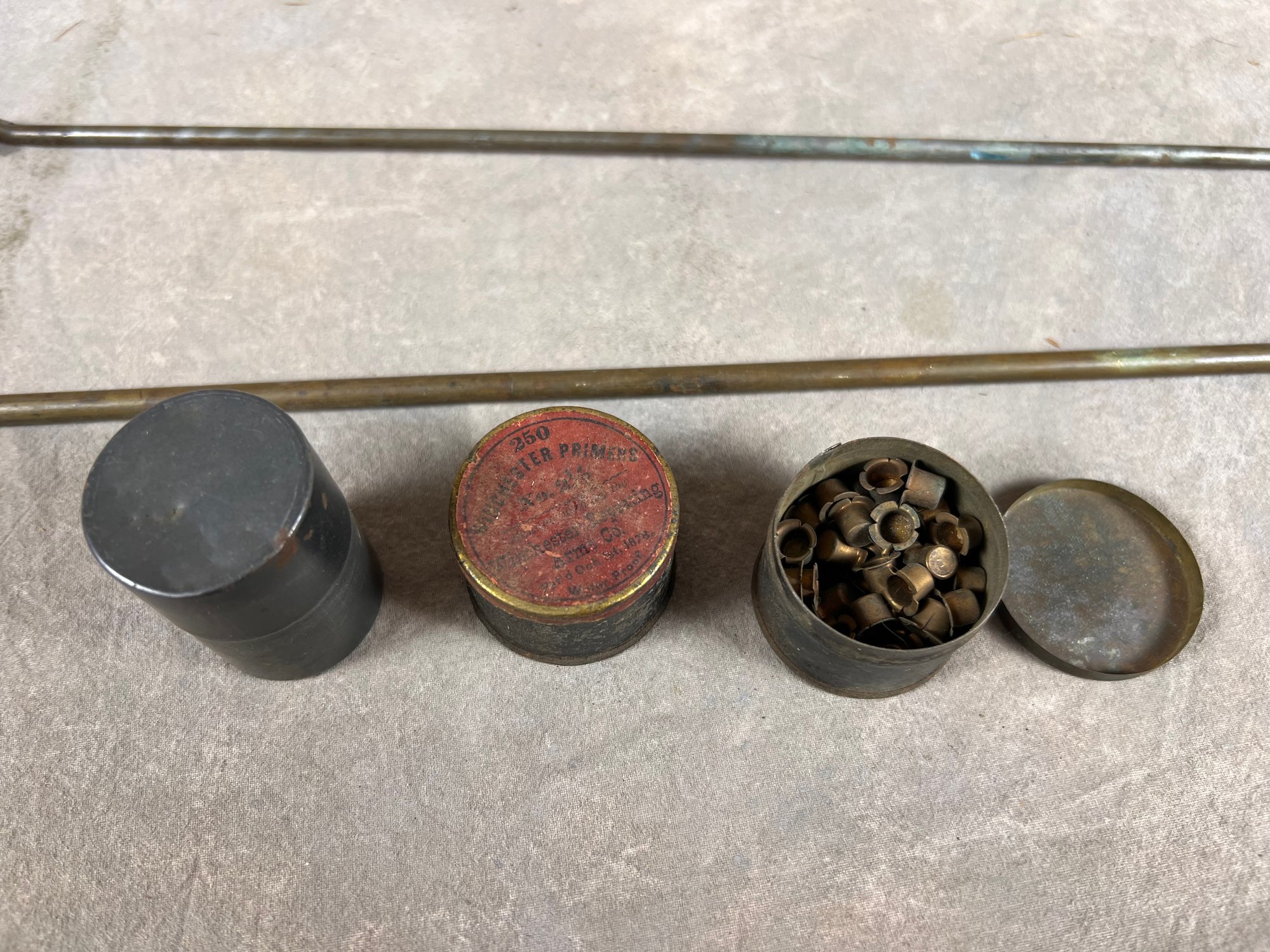 toolbox full of gun cleaning supplies and miscellaneous items, pulled directly from attic